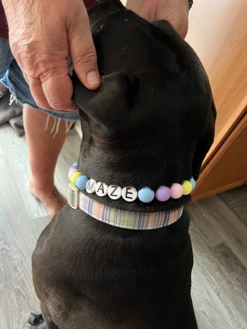 Make your dogs collar uniquely theirs by customizing it with their name in beautiful, vibrant beads.